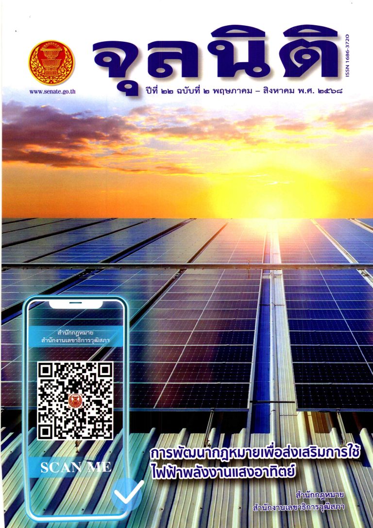 ...สำนักกฎหมาย สำนักงานเลขาธิการวุฒิสภา ได้จัดส่งวารสารจุลนิติ ปีที่ 22 ฉบับที่ 2 เดือนพฤษภาคม ถึงสิงหาคม พ.ศ. 2568 ในรูปแบ...