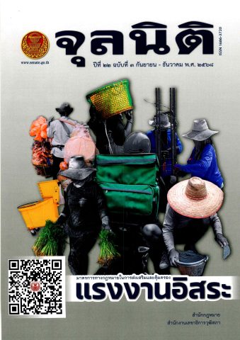 วารสารจุลนิติ ปีที่ ๒๒ ฉบับที่ ๓ ประเด็น “มาตรการทางกฎหมายในการส่งเสริมและคุ้มครองแรงงานอิสระ” พร้อมให้ค้นคว้าแล้ว