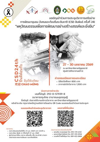 📰 ข่าวประชาสัมพันธ์: ขอเชิญเข้าร่วมการประชุมวิชาการเครือข่ายการพัฒนาชุมชน สังคม และท้องถิ่นระดับชาติ (CSD สัมพันธ์ ครั้งที่ 24)